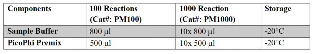 PicoPhi (Cat#: PM100, PM100S) and FemtoPhi (Cat#: FM100, FM100S) 2x Premix will make your experiment easier and more scalable to run!